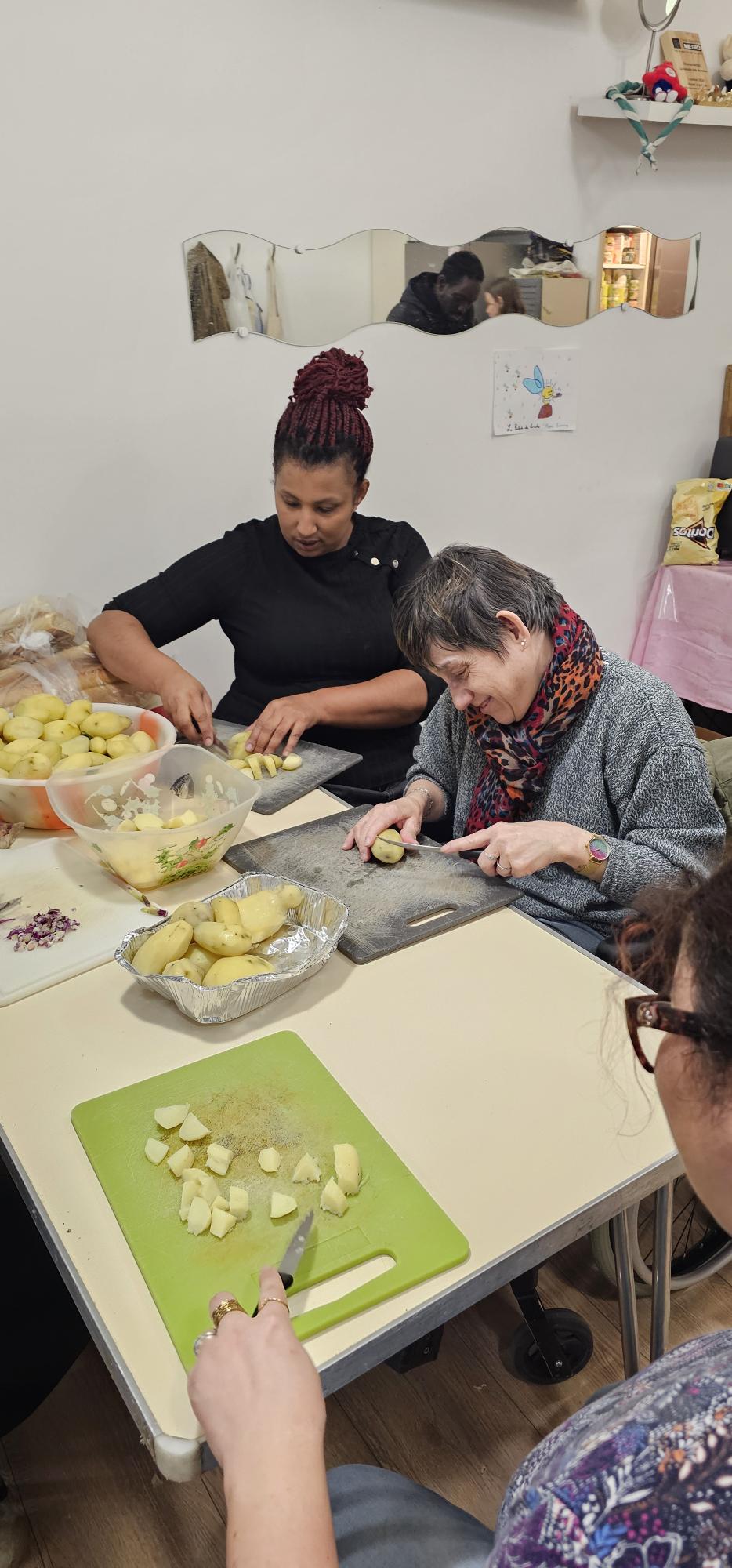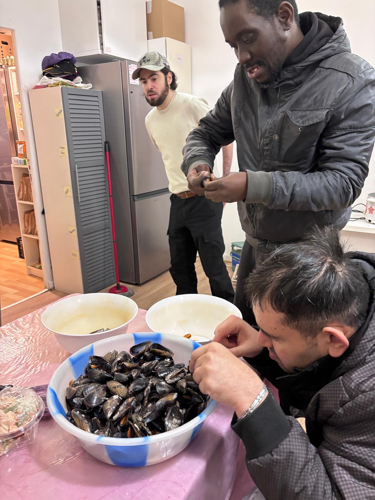 👩🍳 Tout au long de l’après-midi, les résidents ont partagé un temps d’échange convivial avec les bénévoles, dans leur local situé dans le 13ᵉ arrondissement. Ensemble, ils ont participé à la confection de repas destinés aux maraudes.